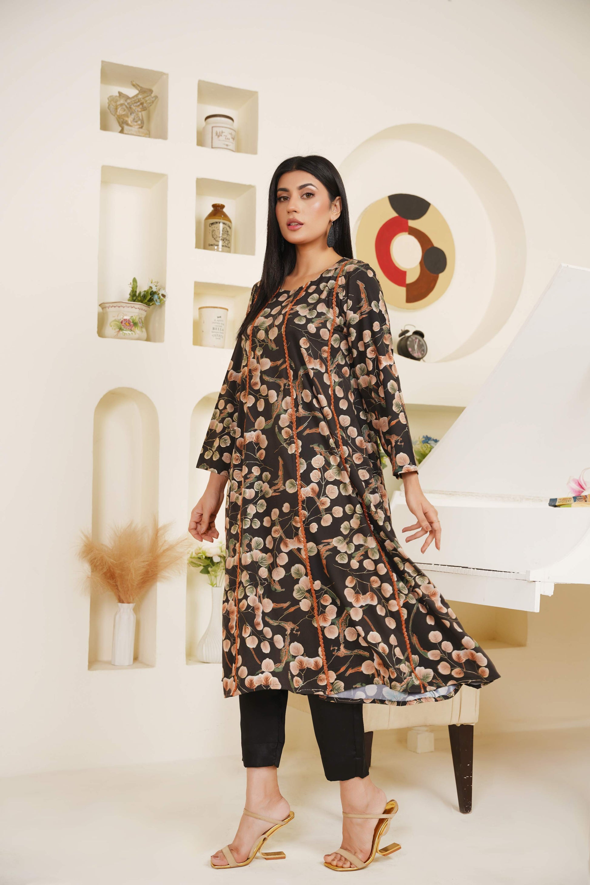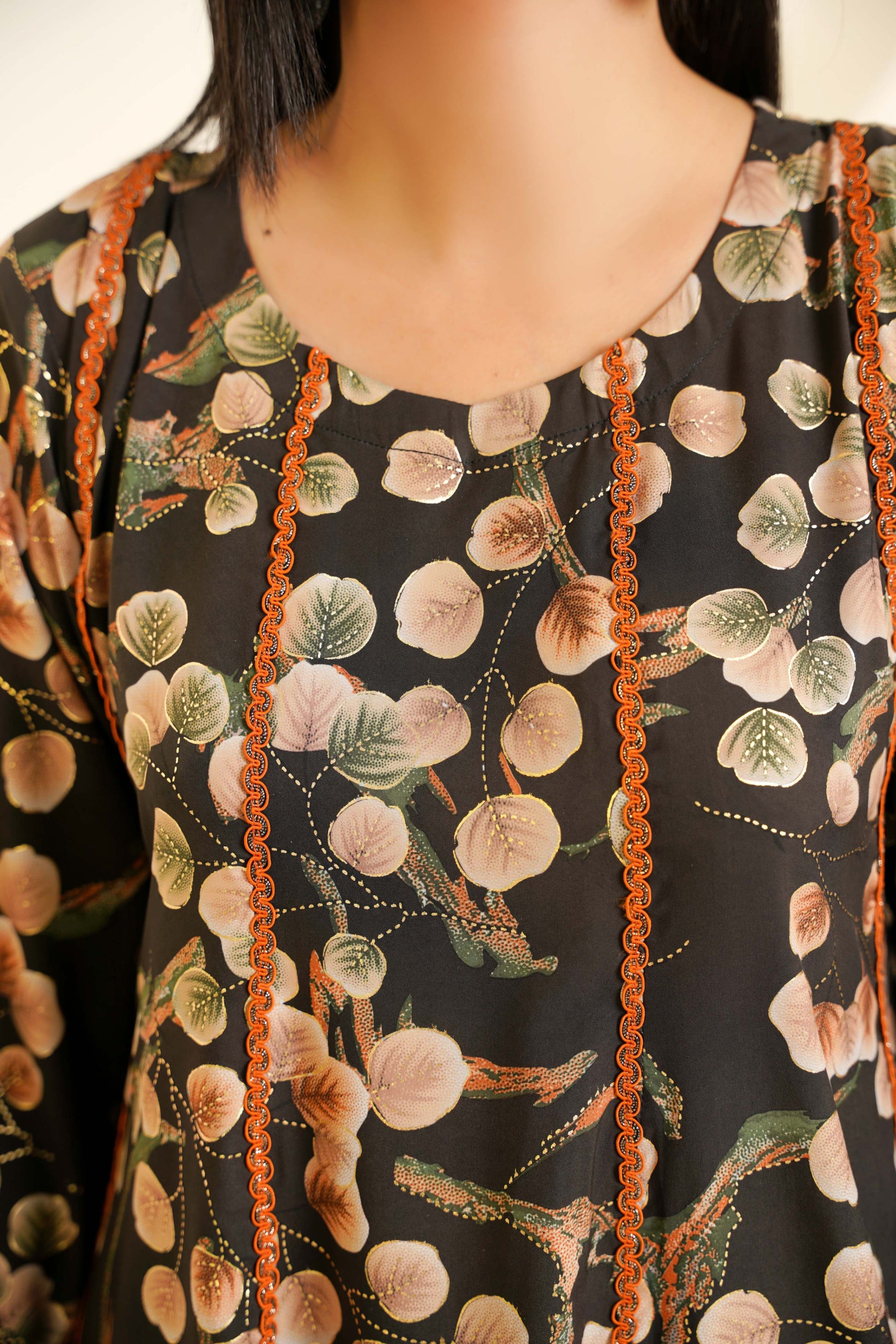 Where minimal meets meaningful — tonal silk flows through soft orange lines, blending heritage craft with present-day form.